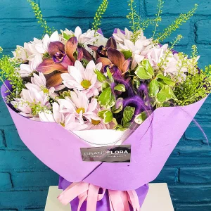 Лиловые мечты-букет из хризантем и орхидей